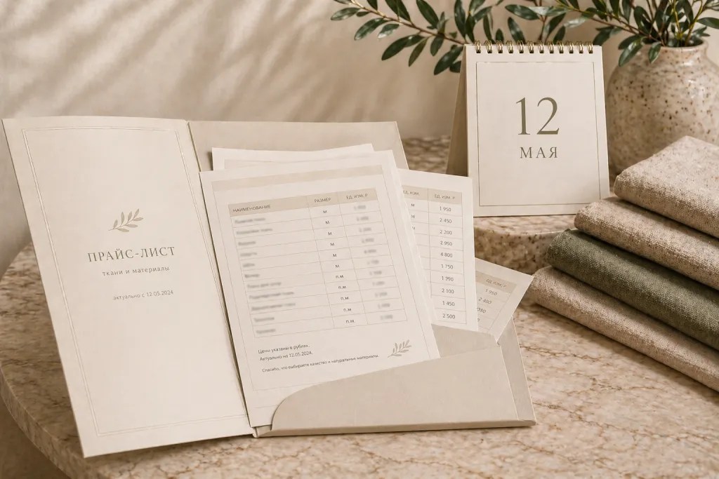 В ближайшие две недели у вас есть возможность оформить заказ по текущим ценам. Это особенно актуально, если вы уже выбрали ткани для проекта, согласовываете смету с клиентом или планируете закупку в ближайшее время.